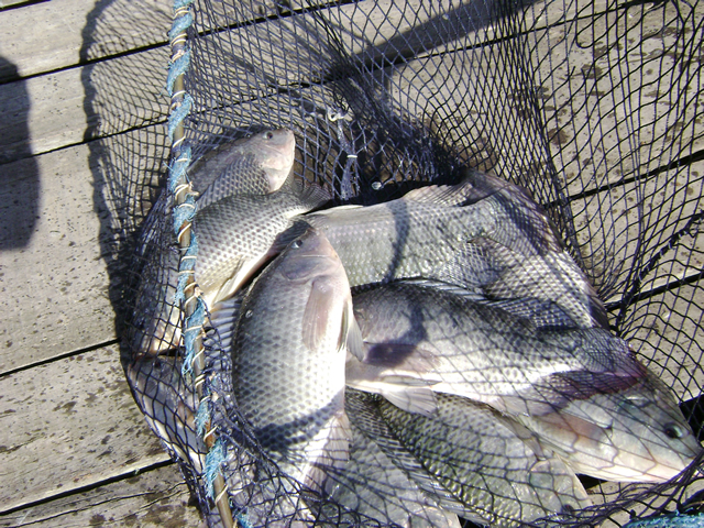 Tilápia, conhecida em Angola por Cacusso. Eles são nativos da África, mas foram introduzidas em